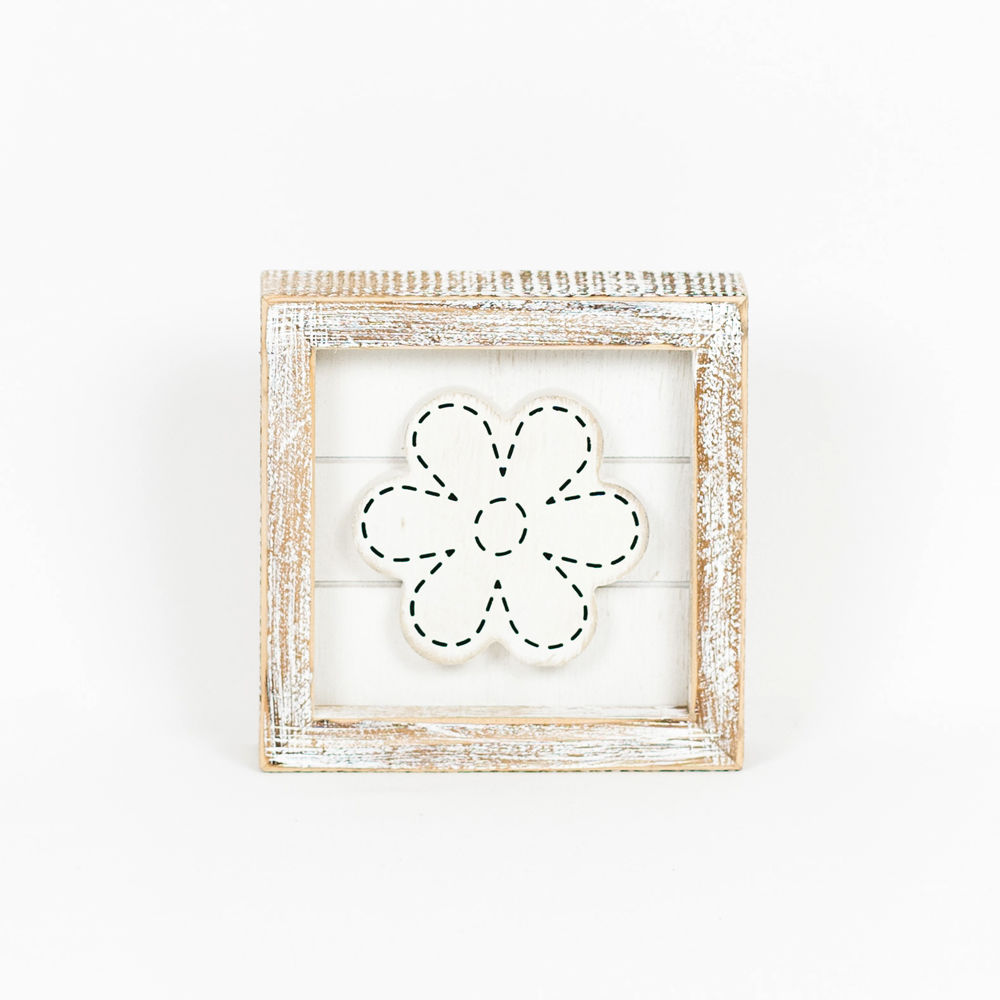 5" x 5" x 1.5" Reversible Wood Framed Sign (Heart/Flower), White/Black, 20072