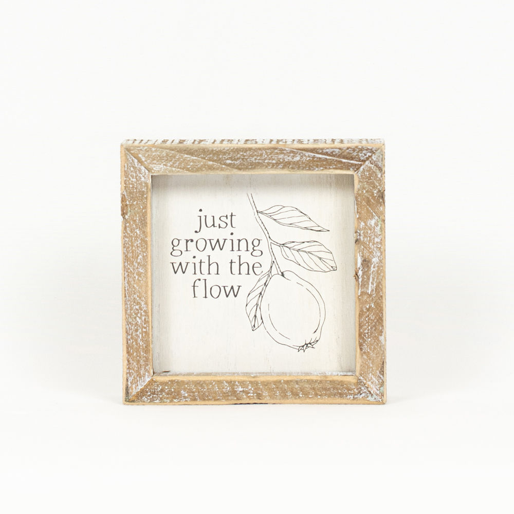 Our 5x5x1.5 reversible wood framed sign is the perfect addition to your home decor. With its charming design and inspiring message, "Just Growing with the Flow" and "Carrot," this sign is a daily reminder to embrace life's journey and go with the flow. Crafted from high-quality materials, this sign is durable and stylish, making it the perfect gift for anyone who needs a little extra encouragement. Order yours today and start growing with the flow!